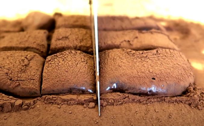 3. Десерт также присыпаем какао, нарезать на квадратные кусочки, теперь немного придадим форму и вот наш десерт готов. Приятного аппетита спасибо что смотрите мой канал пишите комментарии.Видео рецепт ютуб ниже 👇