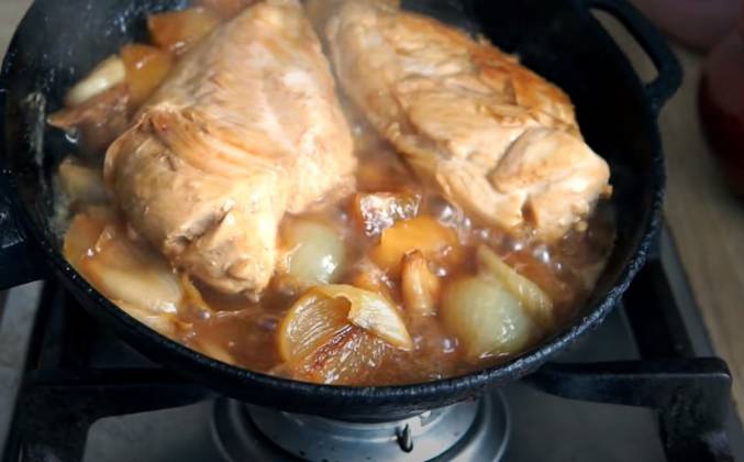 Как приготовить куриное филе с ананасами на сковороде одним куском без духовки. Такое куриное филе готовится вместе с консервированными ананасами и получается очень мягким и сочным. Сказать, что такое мясо тает во рту, это не сказать ничего. Смотрите сами. Готовится очень быстро из простых и доступных продуктов.