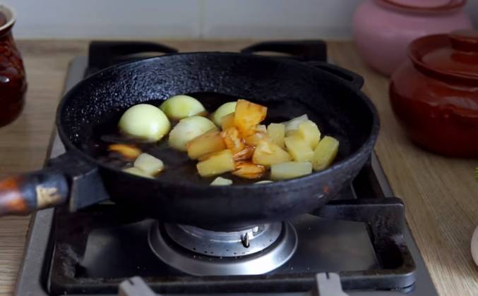 2. Переворачиваю, и выкладываю на сковороду лук вот таким способом. Обжаренную курицу временно убираю со сковороды. Добавляю кусочки консервированных ананасов вместе с соком. Соевый соус и винный уксус. По желанию можно добавить немного остроты. Подойдет кайенский, чили, или чёрный перец. Достаточно две-три щепотки. Накрываю крышкой и даю соусу закипеть. После чего добавляю куриное филе и продолжаю готовить на сильном огне ещё 5 минут. Это поможет испарить часть жидкости и сделать соус густым.