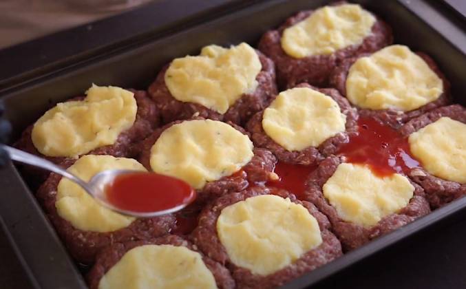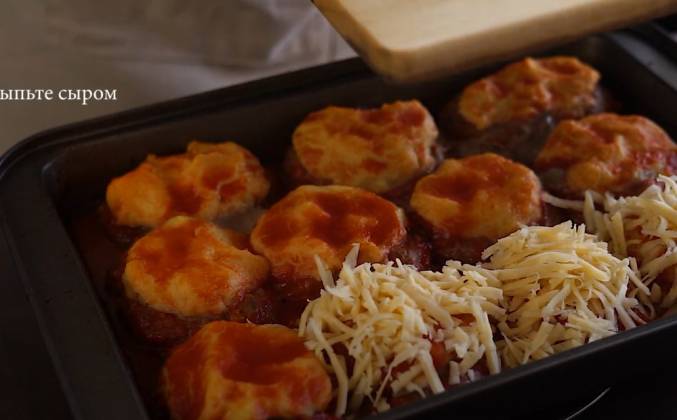 Тефтели с картофельным пюре и сыром в духовке