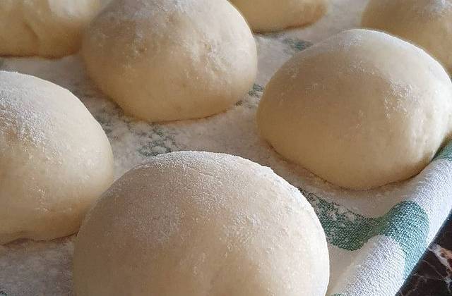 2. Добавляем мягкое сливочное масло и вымешиваем до распределения, тесто должно очень хорошо отходить от стенок чаши. Накрываем пленкой и убираем в холодильник на ночь или на 3 часа. Достаем тесто и распределяем его на 12 равных частей, весом по 40 г. Скатываем шарики и перемешаем их на салфетку, присыпанную мукой. Сверху заготовки тоже обсыпать мукой, накрыть полотенцем и дать постоять 1,5 часа. Они должны увеличиться в 2 раза.