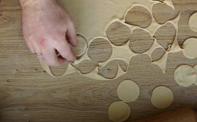 3. Его можно хранить неделю в холодильнике, но лучше сразу приступать к раскатыванию. Как видите оно не рвётся, и раскатывается до любых размеров. Я раскатываю до тех пор, пока не начнёт просвечиваться рисунок на рабочей поверхности. Рюмкой, или стаканом вырезаем кружочки желаемого размера, добавляем начинку и пельмени готовы. Что делать дальше подскажет сердце и ваш желудок. :)Видео рецепт ютуб ниже 👇
