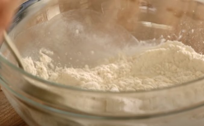 2 большие горстки обычной муки, плюс дополнительная мука для присыпки