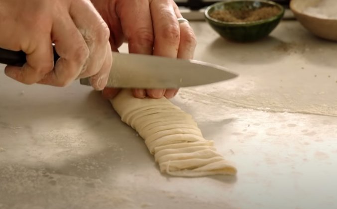 2. На посыпанной мукой поверхности, используйте скалку, чтобы раскатать лист теста до толщины около 2 мм. Хорошо посыпать мукой, а затем свободно свернуть в ролл. Используйте острый нож, чтобы нарезать его толщиной в ½ см, а затем подбросить его руками, чтобы отделить пряди. Готовьте в кипящей подсоленной воде в течение 2 минут, затем процедите и перемешайте с выбранным соусом.Видео рецепт ютуб ниже 👇