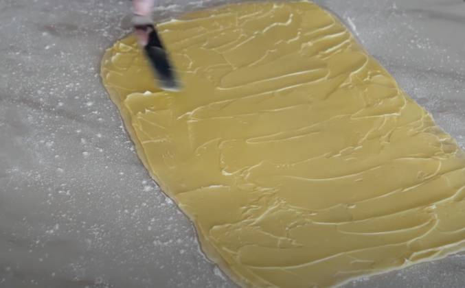 2. Если это выглядит так, хорошо. Четверть-складки не повторяются много раз, и достаточно одного раза. Держите в холодильнике 30 минут. Достаньте тесто из холодильника. Выкладываем тесто. Намазать тонким слоем. С конца скатайте по кругу. Присоедините концы. Держите в холодильнике 30 минут. 4 Яичный желток. 85 г сахара. 10 г кукурузного крахмала. Перемешиваем, пока не исчезнет комок. 200 г сливок для взбивания. 150 г молока. 3 г экстракта ванили. Включи тепло.