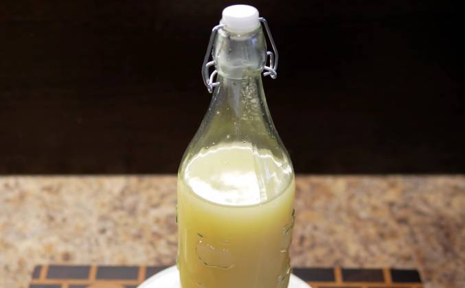 3. И для этого я использую вот такое небольшое ситечко. Ну и по сути все, что нам осталось сделать, это перелить имбирный шот в какую-нибудь тару. Я буду использовать стеклянную бутылку, но подойдет и пластмассовая. Теперь дождемся, пока жидкость остынет, и отправим все это дело в холодильник. После того, как бутылка хорошенько охладиться в холодильнике, ее необходимо взболтнуть и налить себе 50 мл на здоровье. Запах у этого шота не такой уж и сильный, чувствуется и имбирь, и мёд, и лимон, но на вкус это просто бомба. Мощный имбирный вкус, а благодаря мёду напиток мягкий и не дерет так сильно глотку.Видео рецепт ютуб ниже 👇