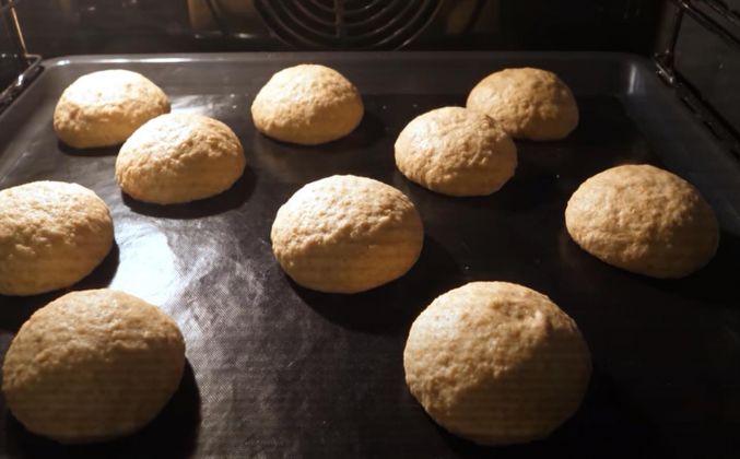 3. Обычно, для подъема теста и расстойки изделий я использую духовку с включенной лампочкой - у меня булочки подходили 20 минут. Теперь включаем духовку на 180°C и пока она нагревается, смазываем булочки обычной водой или молоком и присыпаем отрубями, но можно этого и не делать, а оставить их как есть. У меня духовка быстро нагревается, буквально за 10 минут, если у вас дольше, включите ее заранее. Отправляем противень в разогретую духовку на второй или третий снизу уровень и, чтобы булочки получились очень мягкими, выпекаем их с паром. Наливаем чашку кипятка в любую плоскую емкость, которая разогревалась вместе с духовкой. В данный момент температура в духовке 180°C, режим верхний и нижний нагрев без конвекции. Выпекаются булочки 15-17 минут. Готовые достаем из духовки, даем немного остыть и можно подавать к столу! Булочки получаются очень легкие, мягкие, вкусные и долго не черствеют. Они идеально подходят для тостов, бутербродов и прекрасно сочетаются как со сладкими, так и солеными продуктами. Готовьте с удовольствием! Желаю всем приятного аппетита и удачной выпечки!Видео рецепт ютуб ниже 👇