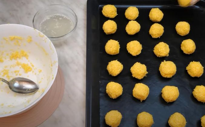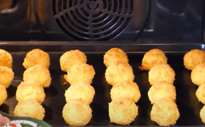 3. Из этого количества продуктов получается 24 кокосовых шарика. Отправляем противень в разогретую духовку и выпекаем печенье на режиме верхний и нижний нагрев без конвекции примерно 20 минут. У меня печенье было готово уже через 18 минут, но вы ориентируйтесь по своей духовке. О готовности печенья свидетельствует красивая золотистая корочка и бесподобный кокосовый аромат. Печенье очень вкусное, хрустящее, внутри мягкое, в меру сладкое и максимально кокосовое! Угощайтесь пожалуйста! Желаю всем приятного аппетита и удачной выпечки!Видео рецепт ютуб ниже 👇