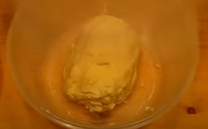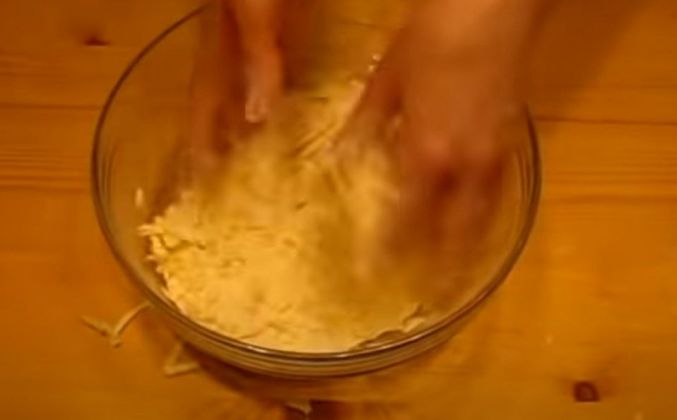 2. Нам понадобится 400 граммов творога, у меня 9 %, но можно использовать творог любой жирности. Его я растерла, затем сюда всыпала подготовленную крошку, и сейчас занимаюсь тем, что замешиваю тесто. Нам нужно все то, что мы собрали в миску, собрать в тесто и добиться его более-менее однородности. Замесить тесто довольно быстро, как я уже сказала, поскольку при длительном вымешивании, во-первых растает масло, во-вторых, может слипнутся половина муки, в результате наши печеньки получатся плотными, - они должны быть рассыпчатыми. В конечном итоге у нас должно получиться мягкое, или менее однородное по консистенции тесто. У меня получилось очень мягкое тесто, оно липкое, но ничего страшного в этом нет. Оно абсолютно не тянется - это тоже очень хорошо, значит печеньки получится рассыпчатыми. Тесто округляем и отправляем в холодильник минут на 30-40. Как я уже сказала, поскольку порог и мука разные то возможно, понадобится в процессе добавить немного муки, но не спешите добавлять излишне муку, поскольку с липким тестом всегда можно договориться, а вот если муки много - это значительно сложнее. И с другой стороны, если вы готовите творожное печенье в первый раз, и в особенности если у вас сухой творог, возможно вам имеет смысл начать не с 350 грамм муки, а скажем с 300 гр.