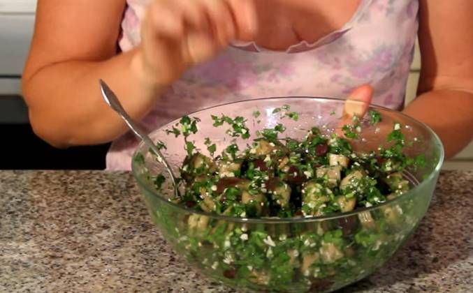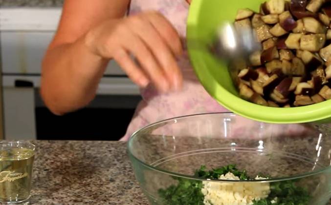 Как приготовить Салат с жареными баклажанами рецепт пошагово