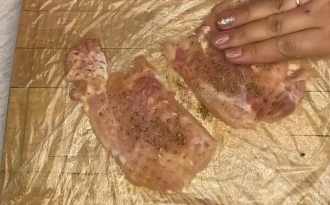 2. Посолить, поперчить.⠀ ⠀ Обваливаем мясо в яичной смеси, затем в сухарях и отправляем на разогретую сковороду с маслом.⠀ ⠀