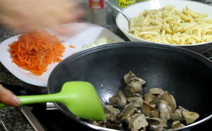 Макароны с куриной печенью - очень вкусное и простое блюдо из макарон. Для этого нам необходимо: куриная печень, морковка, луковица, макароны растительное масло, соль и перец.