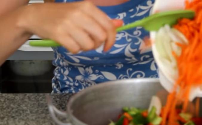 2. Очень аккуратненько все периодически помешиваем. Огонь обязательно уменьшаем и смотрим, чтобы лечо кипело не сильно. Уксус мы добавим в самом конце варки. Пять минут осталось до окончания варки нашего лечо, и я сюда выливаю уксус. Аккуратненько перемешиваю и варю ещё 5 минуточек. Лечо готово и теперь мы будем его закрывать. Для этого нужно обязательно стерилизованная банка и обязательно прокипятить крышки . Все заливаем в баночку и закрываем крышечкой плотно-плотно.