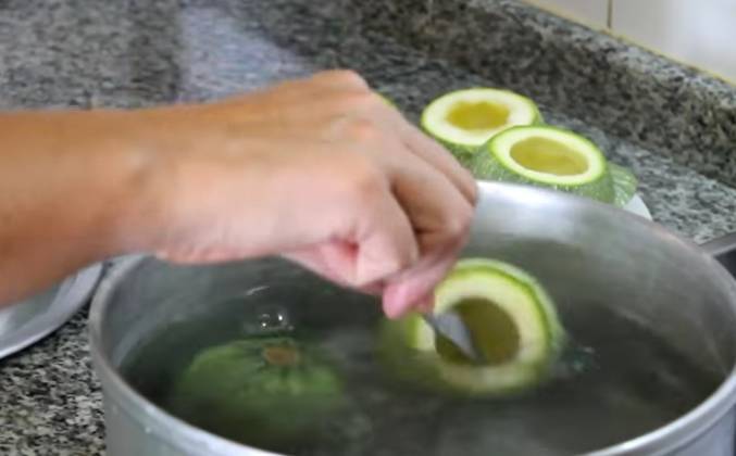 3. Обжаренные грибы с луком и потом добавлена сметана. В каждый кабачок накладываем начинку грибную и сверху кладем начинку сырную. Так поступаем со всеми кабачками. Кабачки я выложила жаростойкую посуду. Добавляю немножечко чистой воды. Запаковываю все в фольгу и отправляю в духовку разогретую до 200 градусов на 30 минут. Вот такие кабачки через 30 минут. Я снимаю фольгу. Сейчас их надо отправить в духовку еще минут на 10, чтобы загорела корочка. Такая красота у нас получилась очень вкусно и красиво.Видео рецепт ютуб ниже 👇