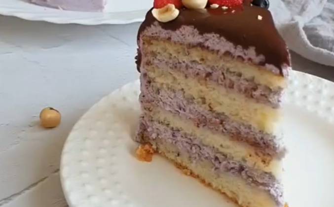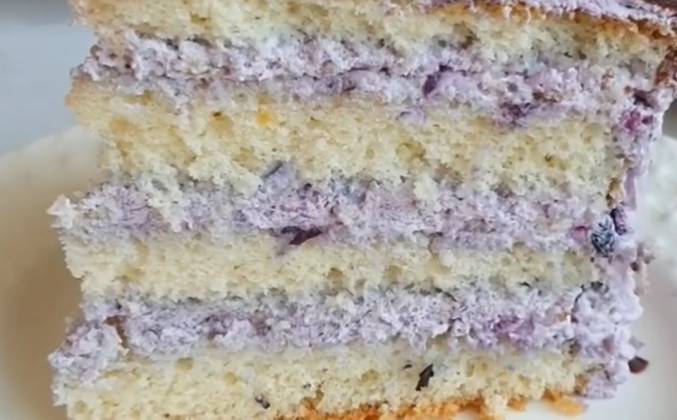 3. Такое вызревание хорошо влияет на качество бисквита. ⠀ Крем и пропитка могут быть любыми, по вкусу. Крем я делала лёгкий и неплотный, цвет из-за черники. Про крем и сборку могу сделать отдельный пост, если нужно.Видео рецепт ютуб ниже 👇
