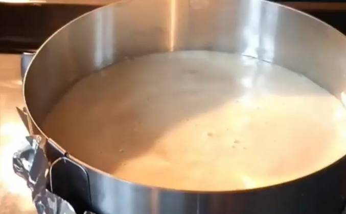 2. Перемешать движением лопаточки снизу вверх. ⠀ Вылить тесто в форму, у меня кулинарное кольцо 18-19 см и выпекать в разогретой до 170° духовке около 40 минут. Готовность проверить деревянной зубочисткой. ⠀ Бисквит остудить, извлечь из формы, перевернуть шапочкой вниз (у меня была маленькая и поверхность выровнялась за ночь), завернуть в пищевую плёнку и убрать на ночь в холодильник (можно на сутки).