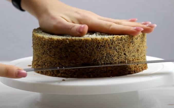 3. Даём ему остыть пока заварная основа остывает нарезаем отличавшийся бисквит я обожаю маковый бисквит за его неповторимую текстуру обрезаем все лишнее верхушку дно и края они нам не нужны так как в любом случае они не такие нежные как сам я лишь для завершения приготовления кокосового крема нам необходимо взбить 30 грамм жирных сливок до устойчивого состояния для завершения приготовления кокосового крема нам необходимо взбить 300 граммов жирных сливок до устойчивого состояния взбиваем без пудры и сахара но учтите что крем получается не слишком сладкий если вы хотите сделать его слаще то процессе взбивания сливок добавьте немного пудры 100 грамм размягченного сливочного масла также взбиваем миксером и начинаем потихоньку добавлять заварную основу когда основа перемешалось всыпаем сливки и взбиваем все минуту до однородности вкуснейший крем для начинки торта готов собираем наш торт тут все как всегда просто первый корж пропитываем сиропом я проварила в воду с сахаром и выкладываем заварной крем.