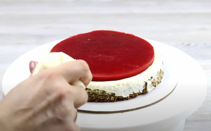 4. Потом кладем конфи после заварной крем накрываем коржом ну вы сами все сейчас увидите пока я забираю торт хотел бы пообщаться с вами недавно мне на канале вышло видео с приготовления макарон и они набрали мало просмотров и я не могу понять почему так происходит может быть все уже овладели этой техникой и или вас не интересуют такие десерты в общем к вам не сложно напишите пожалуйста в коментариях какие именно торт или десерты вы хотели бы видеть на канале чаще чьи комментарии наберут больше всего лайков то я и воплощу ближайшее время кстати о лайках так всегда когда видео наберет 2000 лайков я выложу таблицу с расчетом стоимости в описании под видео там уже новый формат который оказался для вас в более интересным и вообще спасибо всем кто поддерживает мои видео своими лайками и комментариями вы бесподобны собраны торт отправляем в холодильник на несколько часов и после можем украшать кстати я пекла этот торт для фотосессии и и вы сможете найти на моей странице в instagram ссылочка будет в описании а вот и разрез этого красавчика спасибо что посмотрели это видео и до новых встреч пока покаВидео рецепт ютуб ниже 👇