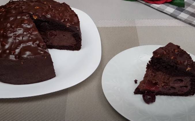 Как приготовить Шоколадный торт с вишней и кремом из сгущенки рецепт пошагово