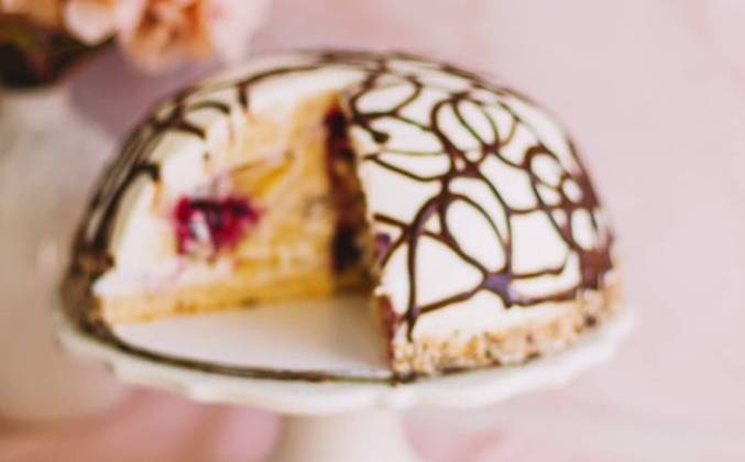Смешать миксером до однородности. Снять с миски пищ.пленку, перевернуть на подложку и аккуратно извлечь торт. Выровнять торт кремом.