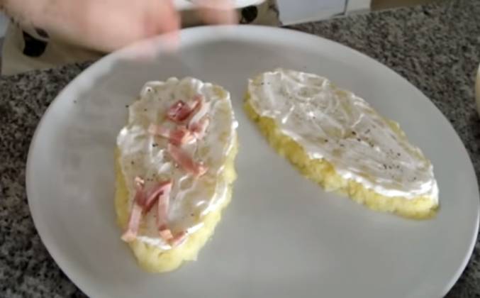 2. Я взяла арахис просто он мне нравится. Сейчас мы будем формировать наши шишки. В такой последовательности - первый слой - картошечка. 2 слой - мясо. 3 слой- лук. 4 слой - огурец. 5 слой -яйцо и потом 6 слоем мы смазываем нашим сырком. Начинаем формировать шишку. Я выложила картошечку на блюдо. Видите получилось виде шишечек. Посолила поперчила и слегка смазала майонезом.
