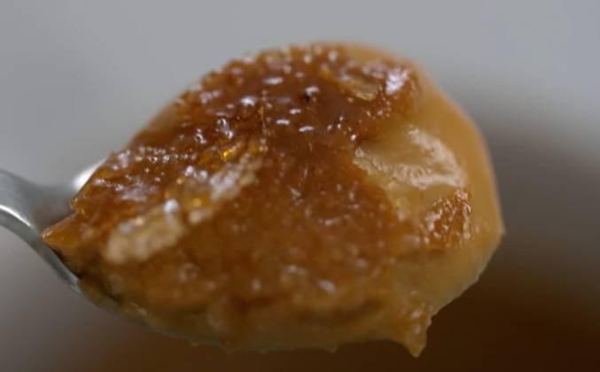 2. Поставьте на огонь и при постоянном помешивании прогрейте до 80С. Как только масса начнет парит, снимите с огня.