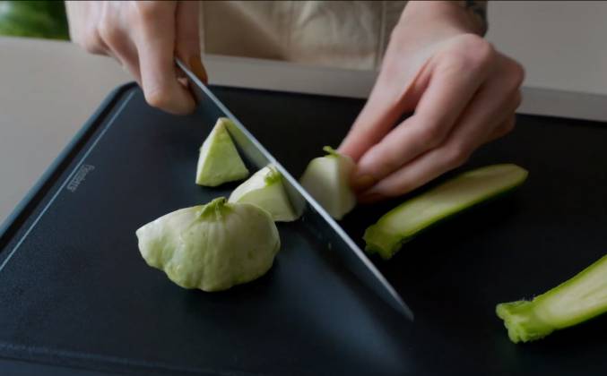 Малосольные кабачки быстрого приготовления. Кабачок довольно скучный овощ, он пресный и водянистый, а патиссон вообще недолюбленый, многие даже не понимают что с ним делать. Предлагаю сегодня превратить их в очень интересное и необычное блюдо. Для этого вам понадобится минут 5-7 подготовки, а потом подождать ночь пока они дойдут в холодильнике. Постарайтесь выбрать на рынке самые маленькие овощи. Чем они меньше и моложе, тем будет круче – они будут хрустящие и очень нежные. Прямо попросите у бабушек, которые продают кабачки и патиссоны выбрать вам самые-самые крошечные.
