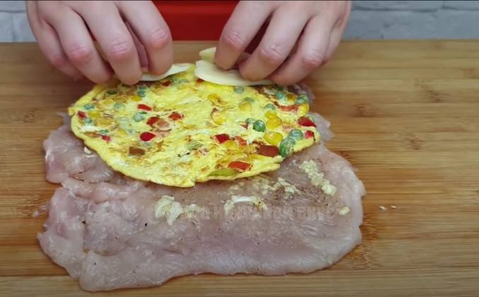 Как приготовить рулет из курицы с сыром и омлетом - удивительная закуска из курицы!