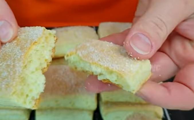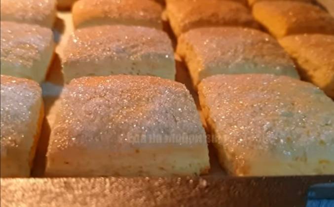 3. Конечно, если хотите полностью хрустящее печенье, то можно и тоньше раскатать. Обрезаю все ненужное, так как печенье будет квадратное. Сверху распределяем сахар и с помощью скалки вдавим в тесто. Разрезаем на квадраты, можете по желанию вырезать любыми фигурами или сделать круглые с помощью стакана. В итоге получился целый противень печенья! Ставим в духовку (к этому времени уже разогретую до 200 градусов Цельсия). Выпекаем до небольшого румянца, займет это примерно 20-25 минут. Во время выпечки печенье обязательно поднимется (примерно в 2 раза) А если тонко раскатано, то и за 10 минут будет готово! Пахнет сдобой и ванилью, сверху у нас хрустящая корочка, а внутри оно очень мягкое и пористое! Просто и вкусно!Видео рецепт ютуб ниже 👇
