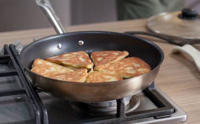 Как приготовить Картофельные треугольники с сыром моцарелла на сковороде рецепт пошагово
