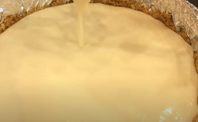 2. А так филадельфия стоит 200 грамм 70 грн. Если кто-то хочет чизкейк и филадельфия дорого, можно взять сливочный сыр гораздо дешевле. И целый кг. Отправляем сливочный сыр в емкость. Миксером ничего взбивать не нужно. Потому что пузырьки и лишний воздух в чизкейке не нужен. Он не должен потрескаться. Поэтому пользуйтесь деревянными, либо силиконовыми лопаточками. Вместо сахара я использую сахарную пудру. И ванилин. Перемешиваем в одну сторону. Сливки, самые жирные, у меня – 33%. По 1 яйцу вмешиваем, потом вмешиваем следующее. Все хорошо перемешали. Немножко тесто выбить. Пока форма будет стоять в холодильнике, около получаса дать постоять. Выливаем сырковую массу в форму. Берем форму и делаем такие движения, оставляем постоять 15 минут. Духовку разогреваем до 200 градусов С. Отправляем чизкейк на 15 минут.
