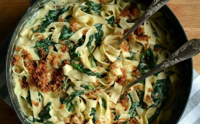 Как приготовить вкусное блюдо: паста со шпинатом и сыром рецепт очень простой.
