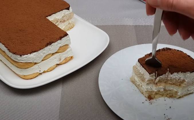 5. Аккуратно придерживаем печенье снизу и вытягиваем бумагу. Когда начинаете формировать торт и подкладываете бумагу под печенье, старайтесь класть так, чтобы под печенье заходило не много бумаги, буквально 5 мм. Так как печенье пропитывается, и потом широкий слой бумаги вытянуть будет сложно. Готовый торт подаём к столу, советую вам его приготовить! Торт очень нежный, вкусный, и при этом просто и легко готовится. Если вам понравился рецепт, тогда делитесь этим видео с друзьями, ставьте лайки, пишите комментарии.Видео рецепт ютуб ниже 👇