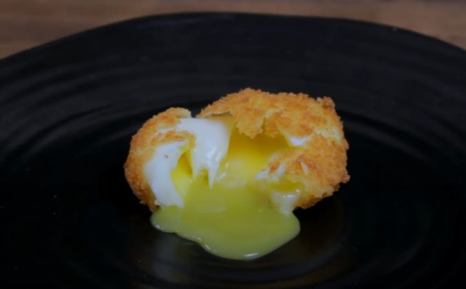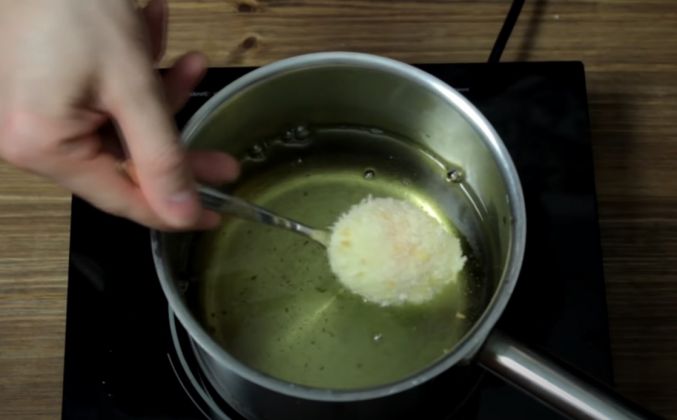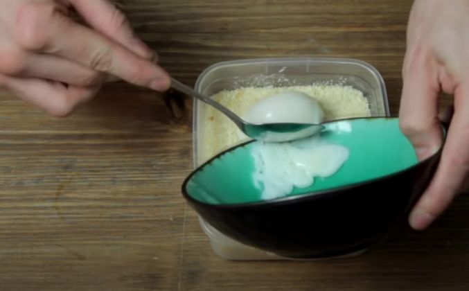 Яйцо в панировке, с жидким желтком видео рецепт. Мягкое но хрустящее, благодаря панировке. Привычный продукт раскрывается по-новому! Чтобы сделать яйцо в панировке с жидким желтком, нам нужно правильно приготовить яйцо! Чтобы температура при варке проникла внутрь яйца, потребуется время. То есть снаружи белок вариться быстрее чем внутри. А желток и вовсе расположен по центру! По этому готовиться он будет в последнюю очередь! И это нам на руку! Воспользуемся этим преимуществом, И будем действовать быстро и точно!