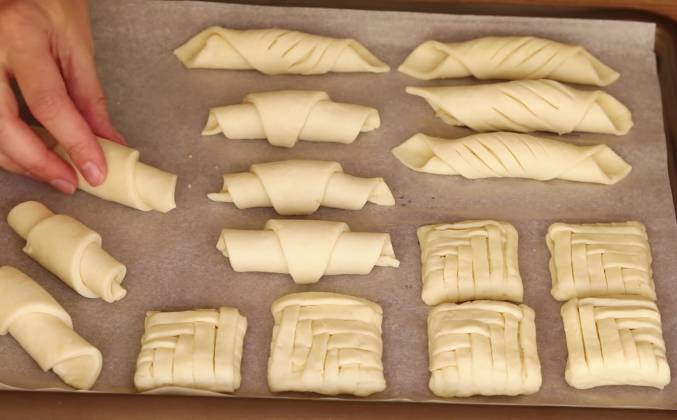 3. Требует времени и терпения. Второй вид печенья — это фигурные рогалики. Остатки теста собираю, раскатываю в круг, делю на сегменты и делаю классические рогалики. Печенье раскладываю на противень, застеленный бумагой для выпечки и отправляю хорошо разогретую до 180°C духовку на 20 минут.Видео рецепт ютуб ниже 👇
