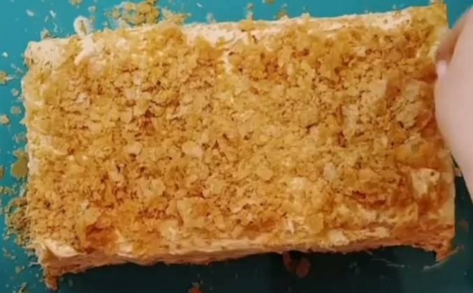 Простой торт из слоеного теста, сливок, сгущенки и орехов