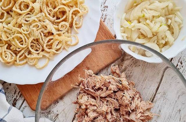 Блинный Салат Курица Яйца Лук