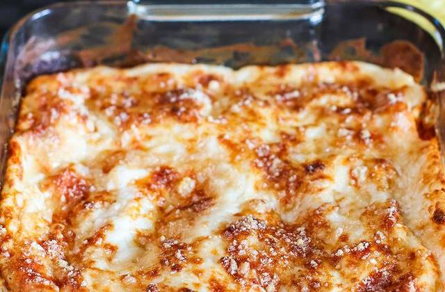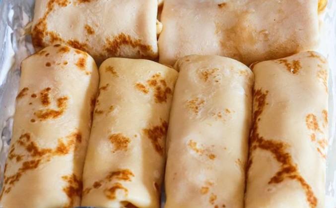 Запеченные блины с сыром и ветчиной с соусом бешамель