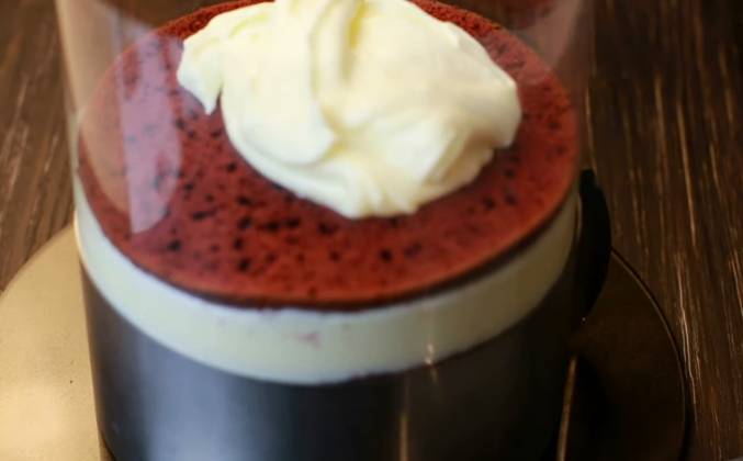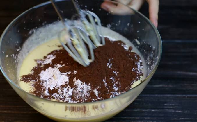 2. Теперь нужно добавить пищевой краситель красного цвета до интенсивного окрашивания. Выложить тесто в две формы диаметром 18 сантиметров и выпекать в духовке течение 30 минут при температуре 180 градусов. Готовность коржей можно проверить деревянной шпажкой. Она должна оставаться сухой. Остывшие коржи нужно разрезать вдоль на две части и обернуть пищевой пленкой. В таком состоянии они должны полежать несколько часов. Теперь самое время приготовить суфле. Для этого нужно два яйца разбить в чашу, добавить 100 грамм сахара и перемешать венчиком.