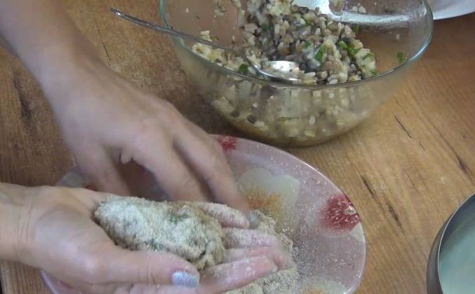 Грибные котлеты из грибов. Во время Поста можно разнообразить своё питание. В определённые дни это допускается. Сегодня мы будем готовить грибные котлеты. Для рецепта мы берём: вымытые и очищенные шампиньоны, яйца, отварной рис, соль, перец, свежая зелень петрушки или укропа, цельнозерновую мука или смесь из панировочных сухарей и обычной муки.
