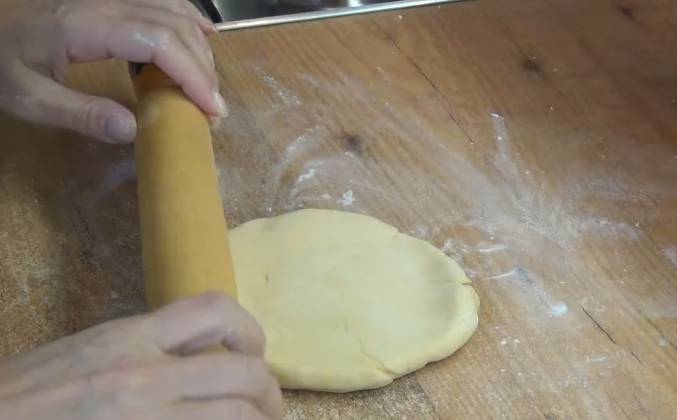 2. Тесто отдохнуло и стало мягким и эластичным, как пластилин. Делим тесто на 2 части. Одну половину снова заворачиваем в плёнку. Посыпаем стол мукой. Раскатываем тесто. Толщина теста не должна превышать 1 мм. Готово. Для изготовления рыбок нам понадобятся инструменты. Можно использовать волнистую или круглую форму для вырезания. Можно использовать фигурный нож. Также потребуются вилка, трубочка и палочка. Я буду использовать волнистую форму. Она предназначена для изготовления печенья. Вырезаем. Делаем рыбку. Немножко растягиваем круглую заготовку с одной стороны. Это будет рыбий хвостик. Придаём форму капли. Надрезаем.