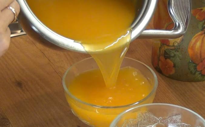 2. Доводим до кипения и варим в течение двух-трех минут, периодически помешивая.. Компот прокипел 3 минуты. Отключаем нагрев. Оставляем эту смесь остывать. Температура опустилась до 50-60°C. Я кастрюлю спокойно держу руками. Она горячая, но не кипяток. Добавляем сюда мёд и хорошо перемешиваем. Мёд добавляете по своему вкусу. Разливаем компот, который станет желе, по креманкам. Желе, приготовленное из агар-агара, застывает даже при комнатной температуре. Чтобы ускорить процесс, убираем желе в холодильник. Желе готово.