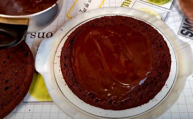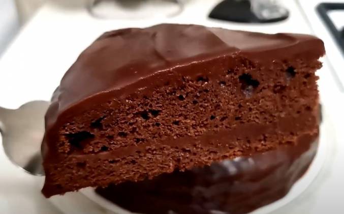 3. Перемешиваем до однородности венчиком. Крем готов. Остывший бисквит разрезаем вдоль на 2 коржа. Собираем торт. Выкладываем нижний корж на блюдо. Обильно пропитываем сахарным сиропом. Для пропитки можно использовать кофейный ликер. Это на Ваше усмотрение. Корж покрываем примерно половиной крема. Сверху выкладываем 2 корж. Немного пропитываем сиропом. Верх и бока торта покрываем оставшимся кремом. Края блюда я вытерла салфеткой. Готовый торт убираем на пару часов в холодильник. Посмотрите, какой шоколадный торт получился. Не приторный, в меру сладкий, и готовится недолго.Видео рецепт ютуб ниже 👇