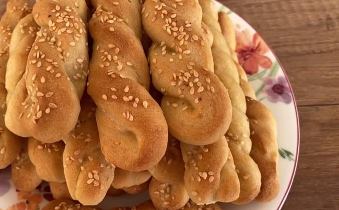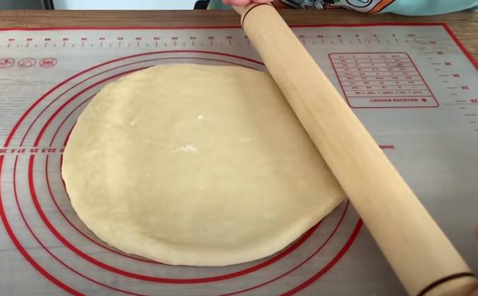 2. Накроем готовое тесто пищевым пакетом и ненадолго оставим, а пока подписывайтесь на наш канал! Раскатываем прямоугольник толщиной 0,5 см и режем на тонкие полоски. Полоски закручиваем в косичку и выкладываем на противень.
