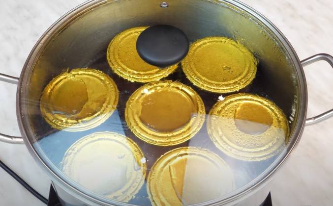 3. Включаем плиту, накрываем кастрюлю крышкой, доводим воду до кипения, убавляем нагрев и при медленном кипении стерилизуем 10-15 минут. Готовые банки герметично закатываем и переворачиваем на крышки. Если часть сахара не растворилась, переверните баночки несколько раз - в горячем сиропе он моментально растворяется. Банки накрываем пледом и оставляем до полного остывания.Видео рецепт ютуб ниже 👇