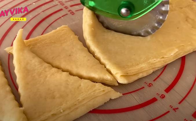 3. Раскатаем один слой толщиной 0,5 см и разрежем на 3 полоски. Полоски режем на треугольники. Выкладываем на противень, застеленный пергаментом и выпекаем при 200 градусов 15 минут. Готовое печенье посыпаем сахарной пудрой. Приятного аппетита! Моя рекомендация - масло можно использовать меньше, 130 гр.Видео рецепт ютуб ниже 👇