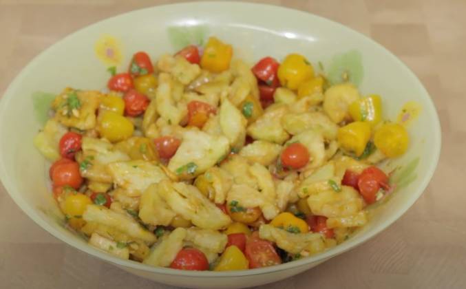 Готовим очень вкусный теплый салат с хрустящими баклажанами и помидорами рецепт от Ирина Кукинг.