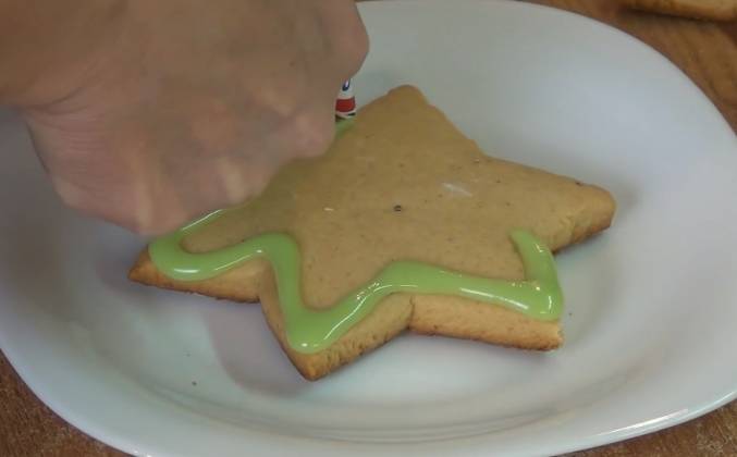 3. Выкладываем звёздочки на противень, простеленный пергаментной бумагой. Я посыпала противень мукой. Я вырезала звёздочки на 2 ёлочки. Ставим их выпекаться в разогретую до 170°C/330°F духовку. Из остатков теста сделаем пряники. При помощи таких формочек. Через 15-20 минут пряники готовы. Достаём их и оставляем остывать. Глазурь в пакетике полностью готова к использованию. Надо только отрезать уголок. И украшать ею звёздочки. Раньше никогда не использовала такую глазурь. Выкладываем следующий слой из пряника. Продолжаем украшать. Сверху ёлочки можно посыпать сахарной пудрой. Чем больше звёздочек, тем выше ёлочка. У меня всё готово!Видео рецепт ютуб ниже 👇