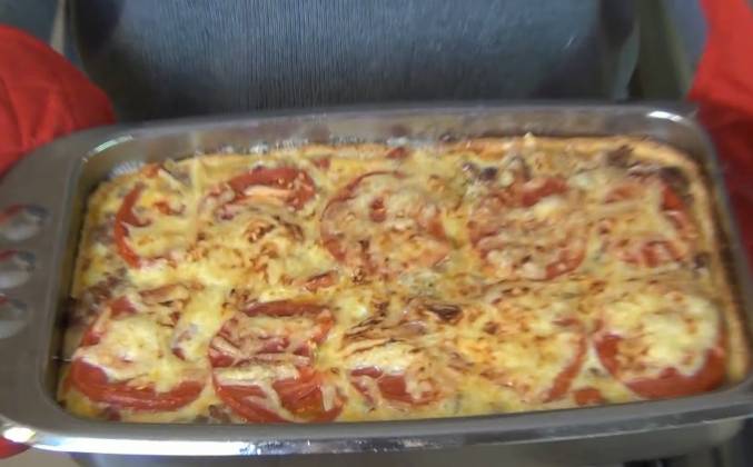 Пирог мясной с картошкой. Для рецепта мы возьмём: 200 мл молока, 200 г муки, 500 г мясного фарша, 3 яйца, 200 г картофеля, 1 помидор, 50 г сливочного масла, 50 г сыра, 2 болгарских перца. 2 ст.ложки томатного соуса, соль и перец по вкусу. Ингредиентов кажется много, но если делать по рецепту, то это не сложно.