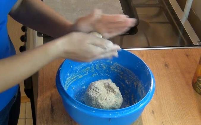 2. Тесто получилось мягким и липким. Оно прилипает к рукам. Поэтому берём муку. Посыпаем себе руки мукой. Отщипываем небольшой кусочек. Размером с теннисный мячик. Для игры в настольный теннис. Делаем лепёшку. Кладём внутрь кусочек шоколада. Маленький. Теперь формируем шарик. Шарику придаём форму трюфельной конфеты. Придаём печенью форму конуса. Выкладываем на противень, застеленный пергаментной бумагой. Ставим выпекаться в разогретую до 180 С духовку.